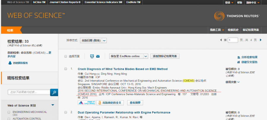 GOOD NEWS!2016年第二届机械工程和自动化科学国际会议(ICMEAS2016)已成功CPCI检索啦!