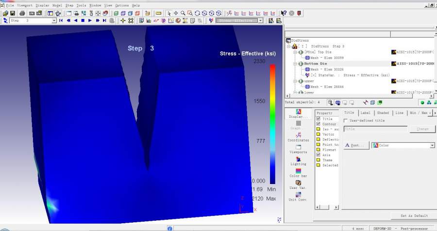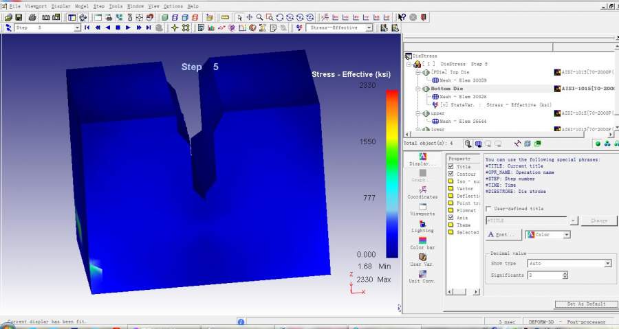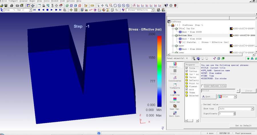 有一个问题想请教大神。我在用deform做模具应力分析的时候,按步骤设置为参数后可以进行,但是在模拟结束后,我看应力情况的时候模具显示不出来,是像附件中的截图1一样,也就是下图所示。