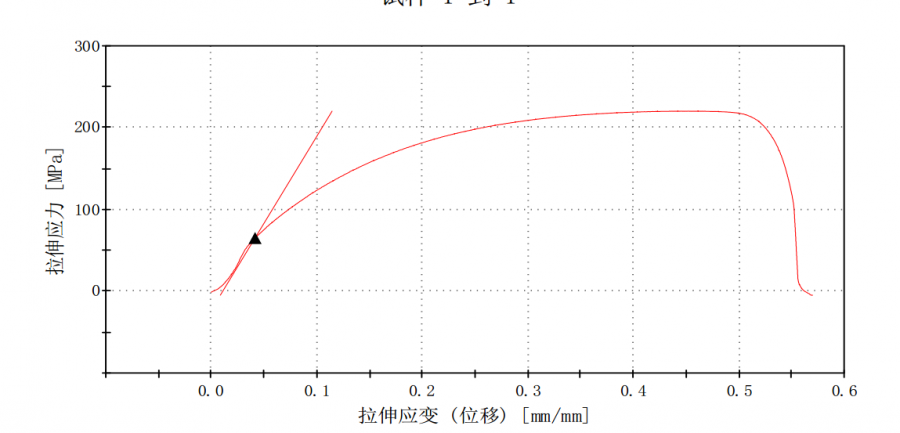 纯铜的拉伸曲线,很平滑,在断裂前找不到断裂点,怎么来计算延伸率?如下图?谢谢各位大神了,新人没有多少金币 ~@`1]7$I43FE($6J)Z(%4E5.png@comma |