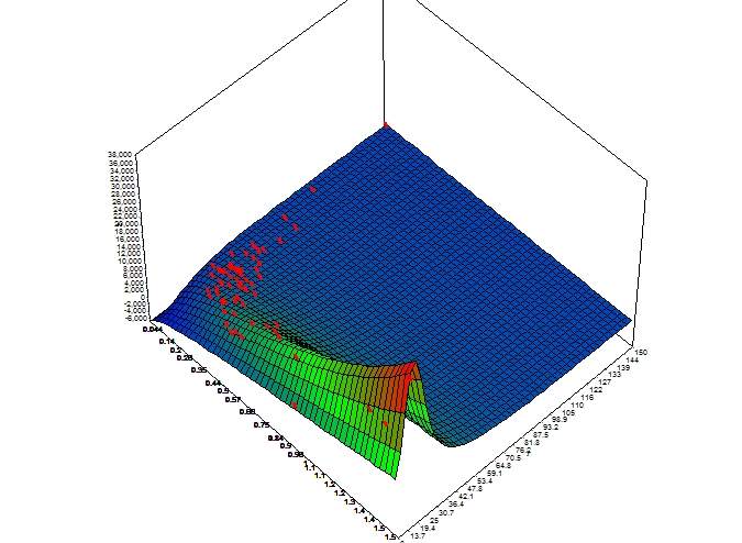 求教,现在我有两个自变量A、C,一个因变量b,想进行非线性拟合,但是不清楚基础模型形式什么样子的,怎样才能拟合出来啊,电脑用不了1stopt。新人万分感谢 NO b A C 1 0.654 28 5683.60 2 0.291 50 996.87 5 0.311 40 1875.54 6 0.427 35 6524.85 7 0.208 70 783.58 8 0.459 18 3111.63 9 1.374 13 19387.70 10 1.47 13 19283.69 11 0.208 60 1992.30 12 0.973 8 6471.44 13 0.137 60 491.10 15 0.236 55 797.27 17 0.817 23 8320.95 19 1.579 16 34521.74 20 0.157 40 1119.78 21 0.21 40 1595.68 22 0.224 45 920.19 23 0.204 45 1492.38 24 0.258 45 623.76 25 0.161 45 1343.00 27 0.518 25 5387.17 28 0.403 25 3766.38 29 0.235 30 1426.20 30 0.129 80 861.11 32 0.272 50 2386.13 34 0.253 40 2347.89 35 0.233 30 2711.99 36 0.608 30 4885.05 40 0.282 30 964.45 41 0.245 32 4186.93 42 0.145 35 1278.10 44 0.196 28 1554.14 46 0.34 25 1953.26 47 0.249 36 2083.64 48 0.172 60 354.87 49 0.196 80 526.30 50 0.137 40 653.96 52 0.465 25 8918.94 53 0.457 25 14249.91 54 0.413 25 7857.18 55 0.506 20 2988.17 57 0.243 25 2550.02 58 0.298 45 746.70 59 0.151 45 205.02 60 0.311 35 1348.93 62 0.273 40 1053.77 63 0.616 25 8281.47 65 0.11 50 657.39 66 0.098 40 385.35 67 0.185 45 1111.01 68 0.177 40 1788.56 69 0.198 45 885.21 70 0.469 20 3022.29 72 0.715 22 13770.59 73 0.204 35 1089.42 74 0.094 100 603.75 75 0.226 45 2381.05 77 0.289 28 1659.22 79 0.407 20 2922.92 80 0.197 55 1013.98 81 0.144 55 464.10 83 0.044 150 50.24 84 0.141 60 551.26 |