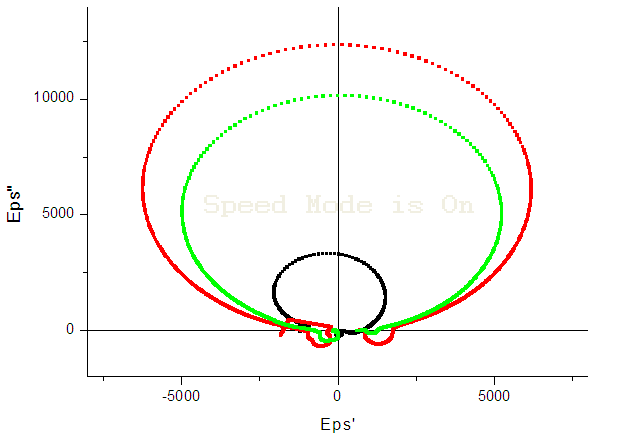 不同颜色的图是一个体系里不同的组分,横坐标是介电常数实部,纵坐标是介电常数虚部,频率范围是2.5*10^6Hz到2*10^7Hz,这跟常见的半圆差得太远了。。而且实部还出现负数,不知道怎么回事,求大神释疑~ 123.png |