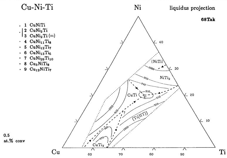 求助Ti-Cu-Ni在900-950℃温度范围或相近的等温三元相图 已有1人参与