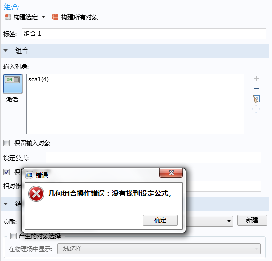 如题,在comsol中的几何设置里的布尔运算中,有一个选项是组合,但是需要有一个设定公式,这个公式是什么意思,要怎么写?