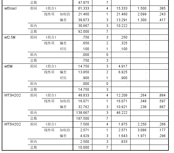 我相比较一下我的菌在空白条件下和在胁迫条件下的生长 用的是单因素的检验 所以因子我选的是空白,因变量选择的是那些胁迫。 这样对吗? 然后就出现了下面的图 这都是相对于空白来说的 这个显著性是吗? 那么基本上都是没有显著性差异的嘛? 我还想问为什么有几个没有值呢? (9OK1Z_SR~YWMMCCSMESGS1.png 33KQ6IX62Y$090JC6L3KQOX.png |