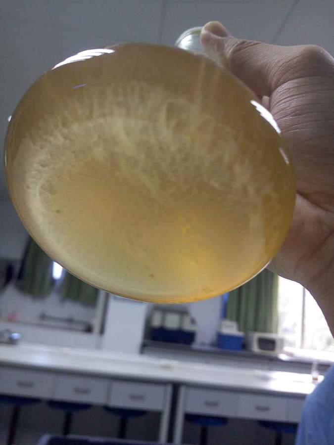 最近在做大肠杆菌培养:平板24h,挑单菌落试管培养24h,再倒到三角瓶(大概150ml)液体培养基中扩培24h。观察到的现象,大多数三角瓶瓶底有白色丝状物均匀沉淀分布,但是有一两个三角瓶壁上黏有白色丝状物。 以为感染杂菌,所以取少量菌液划平板,结果显示没有杂菌。 这是正常现象吗?还请大神解析一下这具体是什么东西。 发自小木虫Android客户端 |