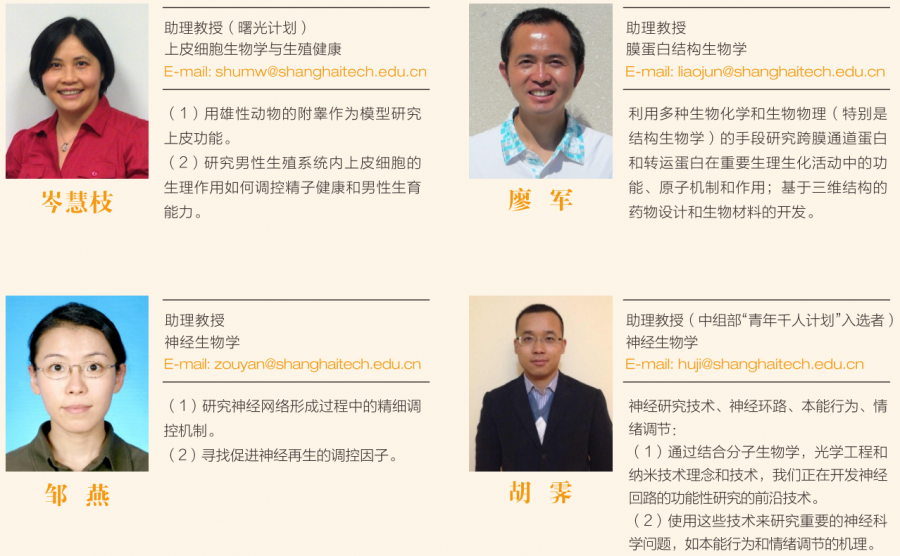 上海科技大学生命科学与技术学院大学生夏令营将于7月上旬举行,组织安排本科生参观上海科技大学、生命学院、iHuman研究所、免疫化学研究所及各课题组实验室,与课题组导师和在学研究生面对面交流。 上海科技大学生命学院大学生夏令营为生命科学相关专业本科生之间提供良好的交流平台,增加本科生对分子与细胞生物学、神经科学、免疫学、系统生物学及生物大数据、干细胞与再生医学、分子影像技术等生命科学前沿研究领域的了解,帮助培养本科生的科研热情和兴趣。 欢迎全国各高校生命科学相关专业二、三年级本科生报名参加! 报名请点击下方链接:https://www.sojump.hk/jq/12965242.aspx 学院教授 免疫化学研究所教授 iHuman研究所 ![]() ![]() |