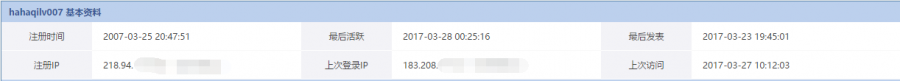 鉴于ID qilv007、hahaqilv007同一天(2017-03-23) 发帖求助外文书籍,发帖IP一致为222.185.***.***,按照版规PM两个ID,情况如下 【马甲帖链接】 https://muchong.com/bbs/viewthread.php?tid=11208676&fpage=2 https://muchong.com/bbs/viewthread.php?tid=11208565&fpage=2 【马甲ID资料】 【马甲ID解释】 【判定类型】 根据版规,认定ID qilv007、hahaqilv007 涉嫌一人注册多ID同天超量求助,为典型的马甲行为! 【处罚结果】 本版对于马甲求助行为一律严惩,现决定对ID qilv007、hahaqilv007 分别处以100金币处罚。 望其他求助者以此为鉴,切莫以身试法,共同营造一个健康,良好的求应助乐土。 马甲求助行为处罚标准 [ Last edited by wgc1912 on 2017-4-5 at 13:44 ] |