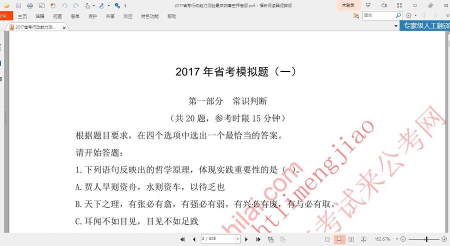 - 附件 2 : 2017省考行政能力测验最后四套密押卷版.part1.rar