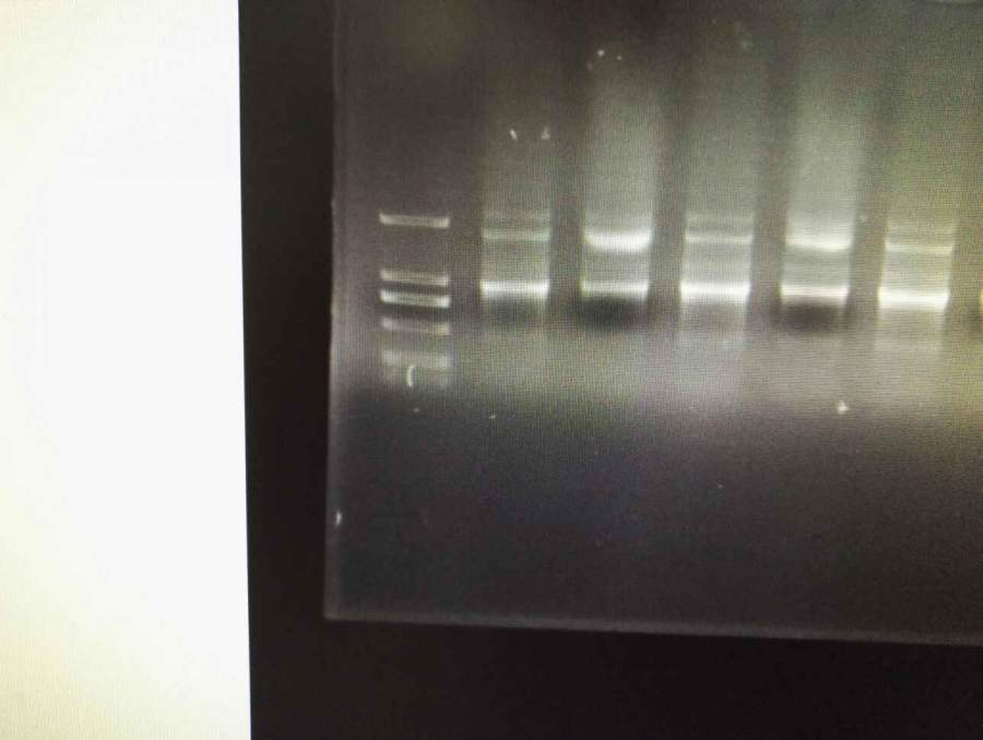 菌液PCR有三条带 最下面的条带大小是对的 但不知道为什么会有上面的两条带 在2K左右,退火温度是61,59,57分别设置12个循环做出来的 用来扩增cDNA的时候只有一条带 效果很好 就是做菌液PCR的时候会有三条带 试剂都做过阳性对照都是对的 发自小木虫Android客户端 |