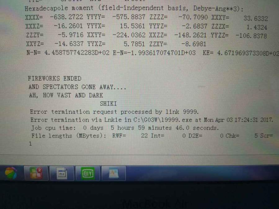 这是一组9999错误。 不知道为什么用输出文件得到的结构不可以继续算 gaussian03直接就显示2070错误 (新手 希望可以得到解答) |