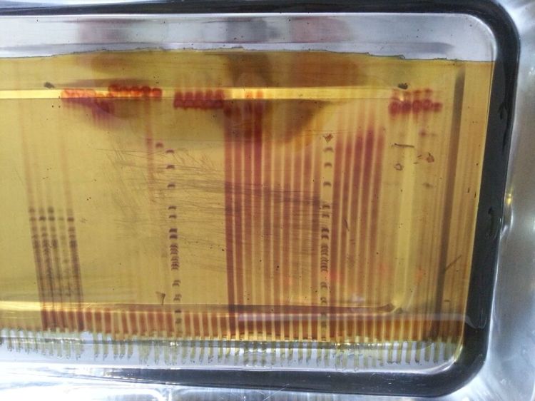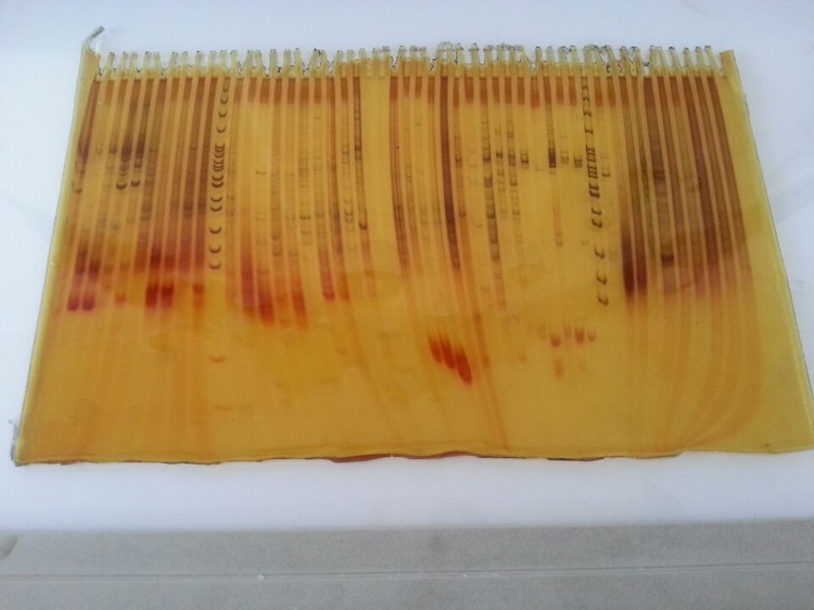 很多问题或者可能,pcr体系不行,体系内物质发生降解,点样时漏液,上样量太大,胶板不均匀,梳子插的太深,等等很明显你的marker点的就很糟