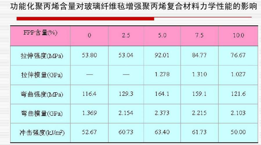 这个看要求的数据来考虑加多少玻纤。图片上功能化聚丙烯是马来酸酐接枝聚丙烯,当然牌号也有很多。