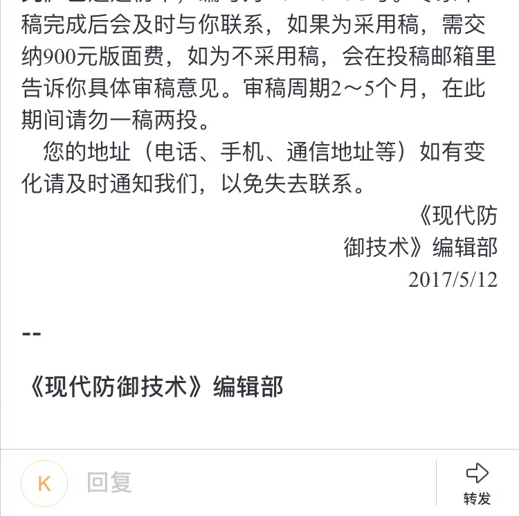 现代防御技术好中吗,投过的审稿快吗多久能见刊 发自小木虫Android客户端 |