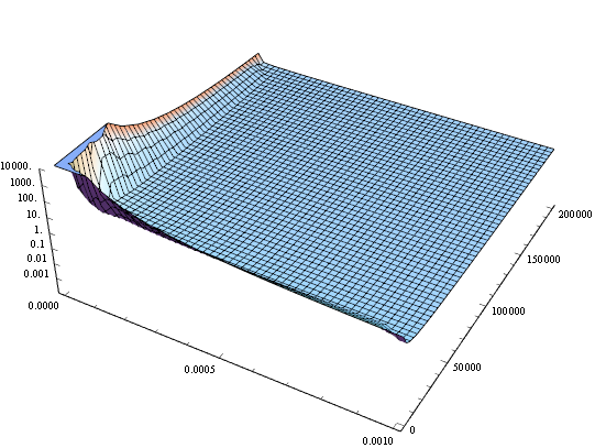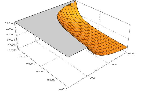 f = {(1 + (10^5/w)^2)/(m w)}^0.5,变量范围m={10^-6,10^-3},w={2000,200000},如何把做出来的三维图变成对数坐标。由于图片大体看起来是平的,所以需将每个坐标轴转化成对数坐标。如图所示。 全部.jpg 局部.jpg 对数坐标.jpg |