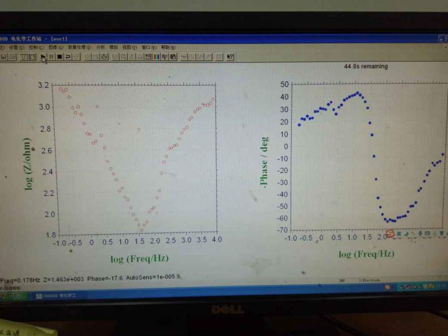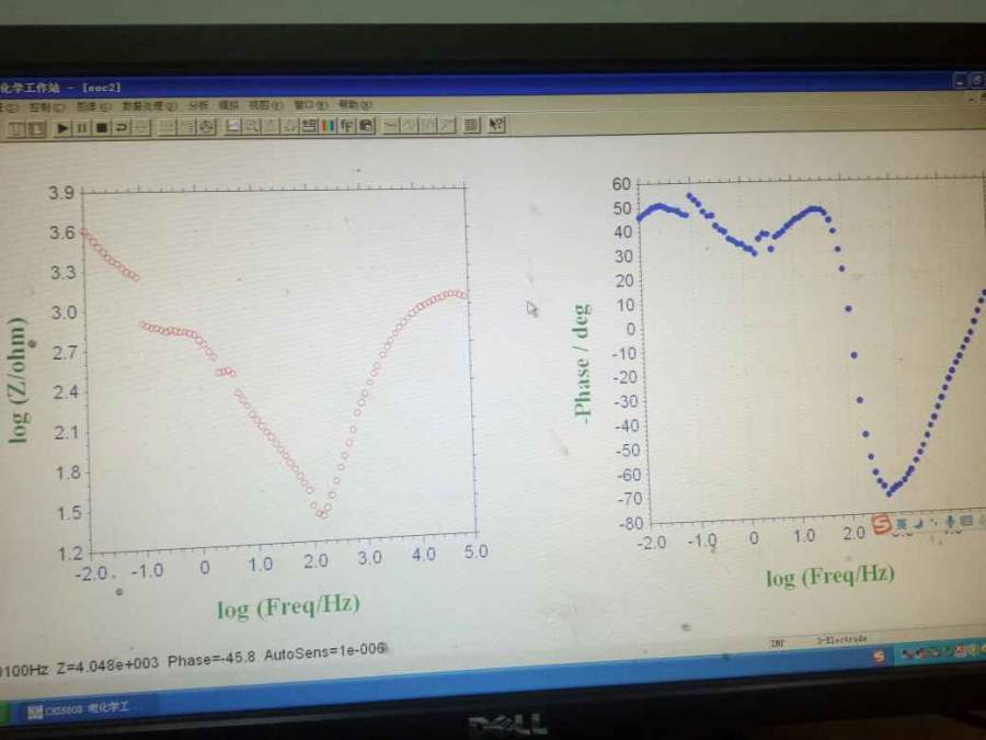 菜鸟一枚,测试采用CHI600D工作站,浸泡1.5h测试开路电位,体系稳定,然后测试EIS,测了几组大多是图示的波特图形态或者是中高频特别离散,拟合后虚部坐标值很高,有没有可能是设备的问题?求大神们帮忙指导一下……
