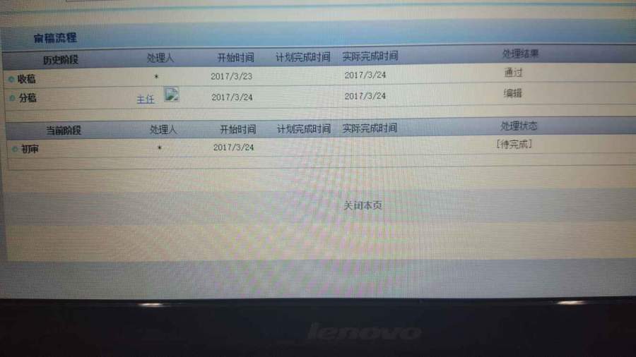 说明稿件还在编辑部,初审中