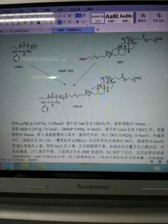 如下图的合成路线,正丙胺引发BLA-NCA生成的聚合物,在紫外下显色,将其和另一个化合物反应后,薄层监控反应进程,反应约50h后发现此化合物的点基本消失,另一化合物在紫外下不显色,理论上应出现一个新的在紫外线显色的点,但实际点板发现没有,核磁显示苯环的峰积分值很小,理论上应该很大,不知是怎么了,苯环去哪了?望各位赐教,不胜感激,或是各位有什么好的合成方法,多给点建议,谢谢了。 发自小木虫Android客户端 |