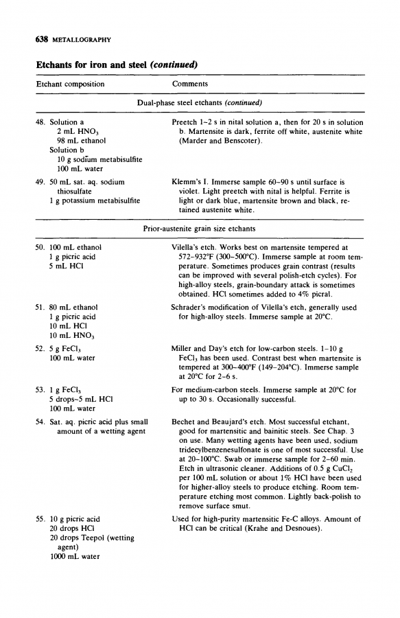 各位大神,本人现在腐蚀一个中碳耐磨钢的原奥氏体晶界,钢种成分C0.42,Si1.4,Mn1.5,Cr1.6,Mo0.35,V0.1,以及少量稀土,热处理状态为调制状态,即860-880℃淬火,500℃回火,用苦味酸加海鸥洗头膏和氯化铜加热腐蚀,晶界没出来,苦味酸加十二烷基苯磺酸也没出来,跪求各位大神,有没有好的腐蚀方法,多谢!!! @comma 发自小木虫Android客户端 |