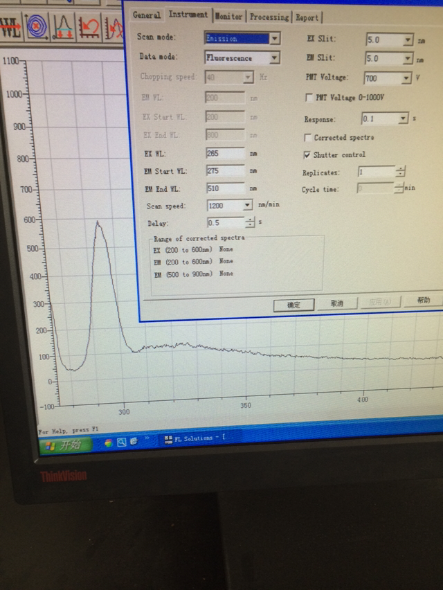 请问纯水为什么有荧光峰啊,是参数设的有问题吗?如图 发自小木虫IOS客户端 |