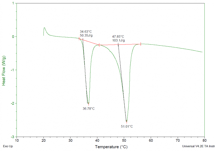 求助!第一次做DSC,有些问题不是很明白。 这个是Na2HPO4·12H2O的DSC图像。加热的过程中,水合物失水,出现2个峰。但是降温的过程,并没有任何的峰出现,第二次升温的过程也没有峰出现。 请教一下为什么会出现这种情况?是因为没有完全失水,导致盐不再和游离水结合? 谢谢! 1cooling.PNG 1 heating.PNG 2 cooling.PNG 2 heating.PNG |