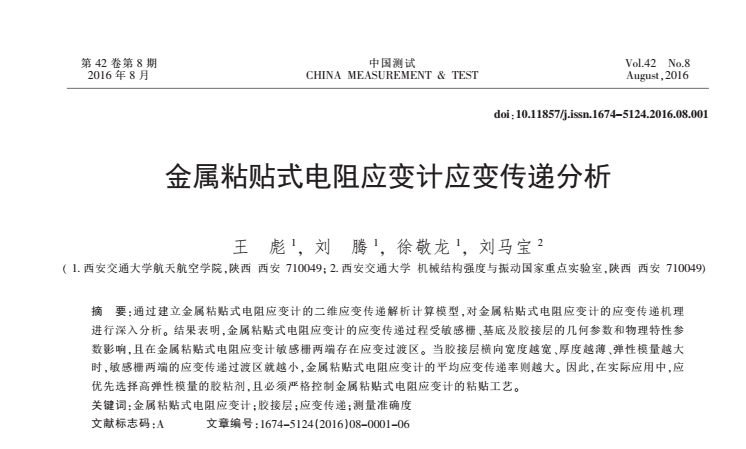 金属粘贴式电阻应变计应变传递分析_王彪.pdf