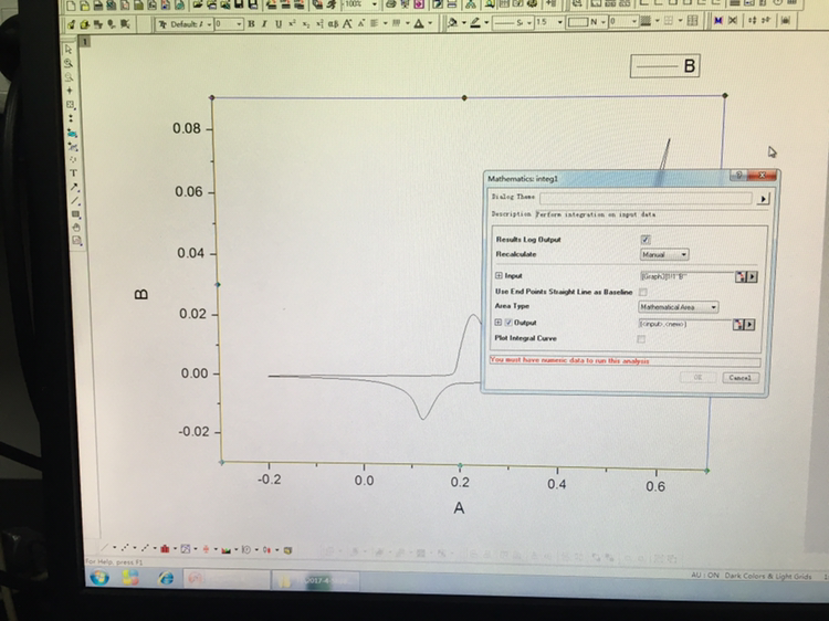 用cv测超级电容器的比电容,想用origin 计算绝对面积时,无法积分如下图,要如何处理?急急急 发自小木虫IOS客户端 |