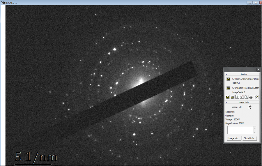 最近刚接触TEM图和SAED图的知识,基本属于小白的阶段。我有一幅SAED图,很困惑,想请大虾帮忙解答一下。从这个SAED图怎么看出这个是单晶或者多晶?我如果对其进行定标处理,如何选取衍射点?比较急,希望各位大虾指点一下。 SAED.png |