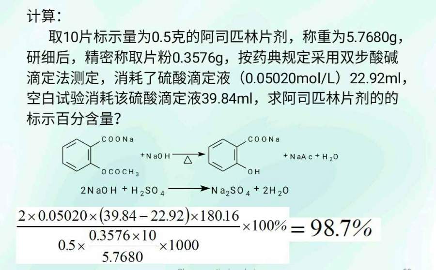剩余量滴定法测定阿司匹林片剂含量