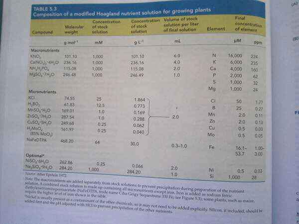 图片是Hoagland营养液配置数据,具体怎么配置,我不太明白,希望大家能不能帮忙解释下,谢谢? 发自小木虫Android客户端 |