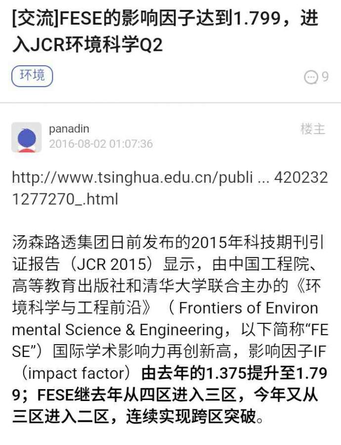 frontiers of environmental science & engineering(fese)最新分区问题 已有1人参与