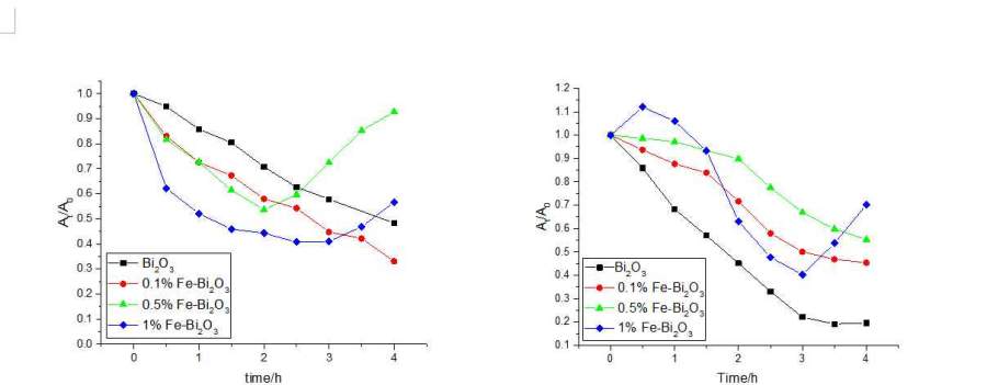 用三价铁离子掺杂氧化铋降解甲基橙,为什么吸附的效果比催化的好,催化是用钨灯模拟太阳光。。。。。左图为光催化,右图是吸附 发自小木虫Android客户端 |