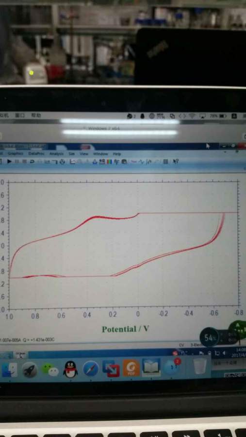 我做的介孔碳的循环伏安曲线,条件0.5 M的硫酸电解质,-1-1V为什么曲线里有直线呢!