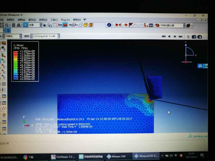 应该是单元大变形导致的。你最好看看如何改善在加工过程中的单元变形。例如:adaptive meshing,导入结果到一个重新网格化的变形后几何, adaptive remeshing, ALE,SPH,...你这个模型到这里还没有出错,看来是explicit模型。 发自小木虫IOS客户端 |