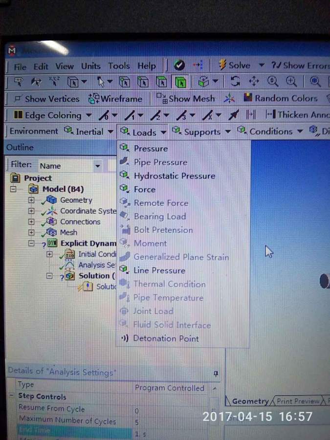 今天按照书本上例子做汽车主轴瞬态动力学仿真时,不能添加力矩载荷moment,并且设置求解步步数时,也没有number of step 选项,希望哪位大神为我解惑! 发自小木虫Android客户端 |