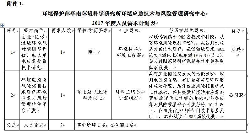 »·¾³±£»¤²¿»ªÄÏ»·¾³¿ÆÑ§Ñо¿Ëù2017Ä깫¿ªÕÐÆ¸ÈËÔ±¹«¸æ