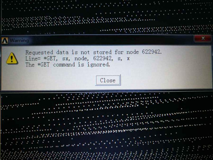 我在workbench中建立了齿轮模型,并完成了接触分析,结果收敛。现在我把结果导入ansys经典(导入的只有节点)想提取某个单元的接触应力,已经获得了单元序号。假设选取的是582613号单元,利用命令*get,contact1,element,582613,cont,stres。结果错误(见图)。如果求某个节点的X方向主应力值,命令如下:*get,sx,node,622942,s,x结果也报错(见图)。请教大神,是命令有误,还是workbench导入apdl之后不能求出节点或单元的应力呢?谢谢。 发自小木虫Android客户端 |