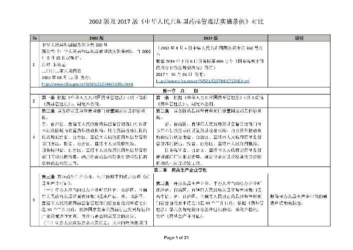 ![]() ![]() ![]() 推荐这份资料是CFDA官网最新公布的《中华人民共和国药品管理法实施条例》和2002年的做了一个详细的对比。每一条款都有比对说明,很详细,值得学习! ![]() ![]() ![]() 【代表图1】《中华人民共和国药品管理法实施条例》对比.jpg.jpg |