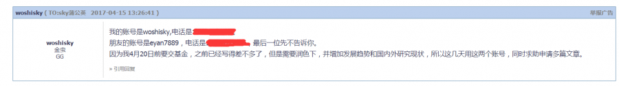 录酶脫脷ID woshisky隆垄eyan7889 脥卢脪禄脤矛拢篓2017-4-15拢漏 路垄脤没脟贸脰煤脦脛脧脳拢卢脟贸脰煤脦脛脧脳脧脿脣脝拢卢路垄脤没IP脪禄脰脗脦陋183.193.*.* 拢卢掳麓脮脮掳忙鹿忙PM脕陆赂枚ID拢卢脟茅驴枚脠莽脧脗 隆戮脗铆录脳脤没脕麓陆脫隆驴 https://muchong.com/bbs/viewthread.php?tid=11284438&pid=1#pid1 https://muchong.com/bbs/viewthread.php?tid=11284372&pid=1#pid1 脭脷PM潞贸脫脰鲁卢脕驴脟贸脰煤脪禄麓脦 https://muchong.com/bbs/space.php?uid=835632&view=thread https://muchong.com/bbs/space.php?uid=2065757&view=thread 隆戮脗铆录脳ID陆芒脢脥隆驴 隆戮脜脨露篓脌脿脨脥隆驴 赂霉戮脻掳忙鹿忙拢卢脠脧露篓ID woshisky 脡忙脧脫陆猫脫脙 eyan7889 ID脥卢脤矛鲁卢脕驴脟贸脰煤拢卢脦陋碌盲脨脥碌脛脗铆录脳脨脨脦陋拢隆 隆戮麓娄路拢陆谩鹿没隆驴 卤戮掳忙露脭脫脷脗铆录脳脟贸脰煤脨脨脦陋脪禄脗脡脩脧鲁脥拢卢脪貌脝盲脭脷麓娄脌铆脝脷录盲脠脭鲁卢脕驴脟贸脰煤拢卢脧脰戮枚露篓露脭ID woshisky隆垄eyan7889 赂梅麓娄脪脭 200赂枚陆冒卤脪碌脛麓娄路拢 脥没脝盲脣没脟贸脰煤脮脽脪脭麓脣脦陋录酶拢卢脟脨脛陋脪脭脡铆脢脭路篓拢卢鹿虏脥卢脫陋脭矛脪禄赂枚陆隆驴碌拢卢脕录潞脙碌脛脟贸脫娄脰煤脌脰脥脕隆拢 脗铆录脳脟贸脰煤脨脨脦陋麓娄路拢卤锚脳录 [ Last edited by sky脝脩鹿芦脫垄 on 2017-4-21 at 19:57 ] |
