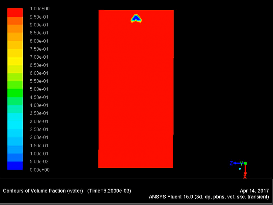fluent小白,求助问题。我是在3D模型下,模拟单个气泡在水中上升流动,但气泡出现分裂然后重新聚合的现象。依据参考书上的模型为2D模型,进行模拟后气泡只会发生变形,而不会出现分裂的现象。我模拟的条件是:应用多相流VOF与离散k-e模型,水流速3m/s,管道尺寸为40*10*19mm,气泡尺寸1mm,x轴为气泡运动方向,已添加重力,表面张力0.075,粘性应力0.001003,都是依据默认参数,没有进行修改。 我也试过增大表面张力到0.75,仍然出现分裂现象,增大到70,气泡变形严重,随后停止运算。湍动能依据公式也进行过修改,然后还是出现气泡分裂。 请大神不吝赐教,感激万分! 气泡分裂.PNG 最终合并.PNG@wuming524 |