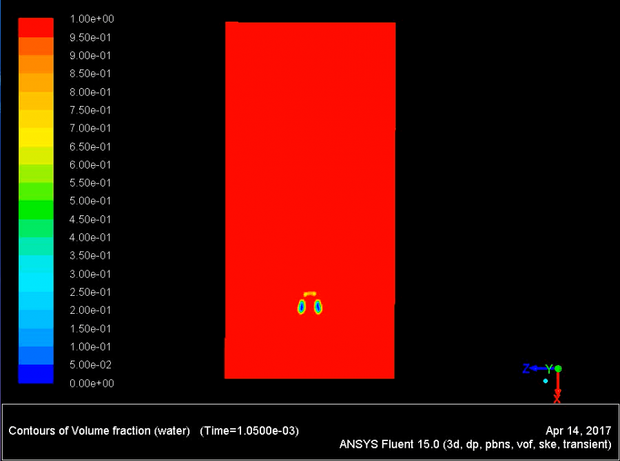 3D模型中,模拟气泡上升流动,单个气泡出现分裂现象
