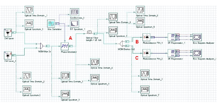 请问有做过基于相位调制的瞬时微波频率测量的大神吗?用optisystem进行仿真,出振幅比较函数ACF的函数,我照着别人的结构仿的,但是出不来正确的数据,实在不知道问题出在哪里啊 JU10KH28(6D}R]IE36MB1Q7.png 3OZD$0%}N~J{(1_P[S}1%TF.png |