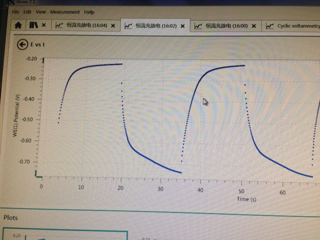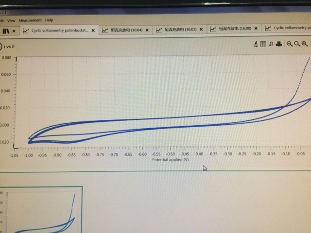 各位大神好,本来做光催化的,然而色谱坏了,这几天老师让我把应用放在超级电容器上,我们实验室是autolab,完全不会操作啊,我的样品是氧化铁,然后复合C3N4。我目前测得是纯的氧化铁,想练练手,第一个问题:首先电势窗口不是很懂,看了小木虫很多问答,也翻越了几篇文献,发现纯的氧化铁大多数在-1.0-0,那我也就选了这个窗口,然后发现CV图中有一个峰,不是应该没有峰的么。第二个问题,恒流充放电,我用较小的电流密度时,得到的电压区间小于CV图的电势窗口,有时候也会有电压冲不上去的感觉,然后把电流密度增大后,电压区间就和电势窗口一样了。然后我放了几张图,后面两张是恒流充放电的参数设置,不是很懂啊,那个时间是什么意思呢?然后那个Emax和Emin就是电势窗口范围么? 电化学对我来讲实在是太难了,求助一下小木虫的大神么,万分感激啊! 发自小木虫IOS客户端 |
