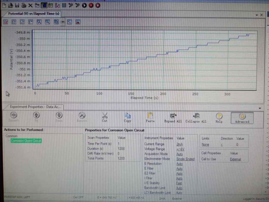 我之前也出现过这种情况,应该是你试样的阻抗较大,所以电流很小,外界干扰信号相对本身体系的信号过大,可以在设置的最后一步加个滤波5hz 发自小木虫Android客户端 |