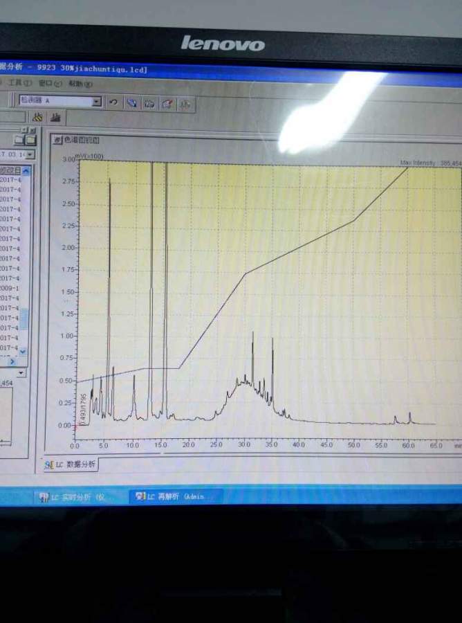 我测是中药材的提取物,主要是看几个成分的含量,因为有几个成分就是在那个凸起的上面,前面十几分钟那里也有,有极性较大的的成分(有机酸成分),也有后面差不多30到40min那里的中等极性的成分,我是想把图跑得好看些,至少把那个凸起消下去的 发自小木虫Android客户端 |