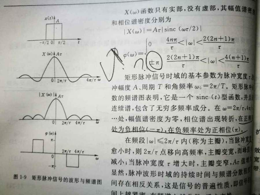 矩形脉冲信号傅里叶变换后的相位谱问题