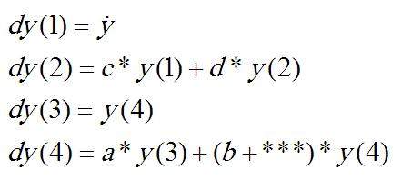 你图片里不是很清楚, 正常 dy(1)=y(2) ; dy(2)=c*y(1)+d*y(2) ; dy(3)=y(4) ; dy(4)=a*y(3)+(b+ dy(2))*y(4) ; 结果之所以对不上,是因为这里有好几个因素: 1. 时间的步长 2. 二阶导 中 的 常数 dy = y+c,这里有好几个地方都可以加 c 常数 具体得看文献中给出的数据够不够具体 |