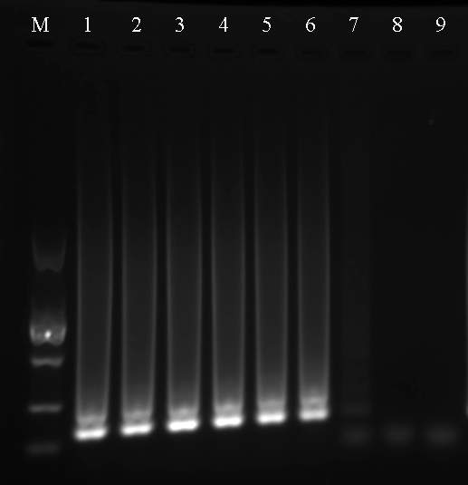 我是刚做LAMP实验的,很多都不太清楚,向大家请教一下。我跑了一个温度梯度(60min),其中第7泳道看着是别人文献里面的典型的LAMP扩增图,但是效率很低。我想问一下,1-6泳道的是LAMP扩增出来的产物,还是没有扩增,只是二聚体或其他!谢谢! |