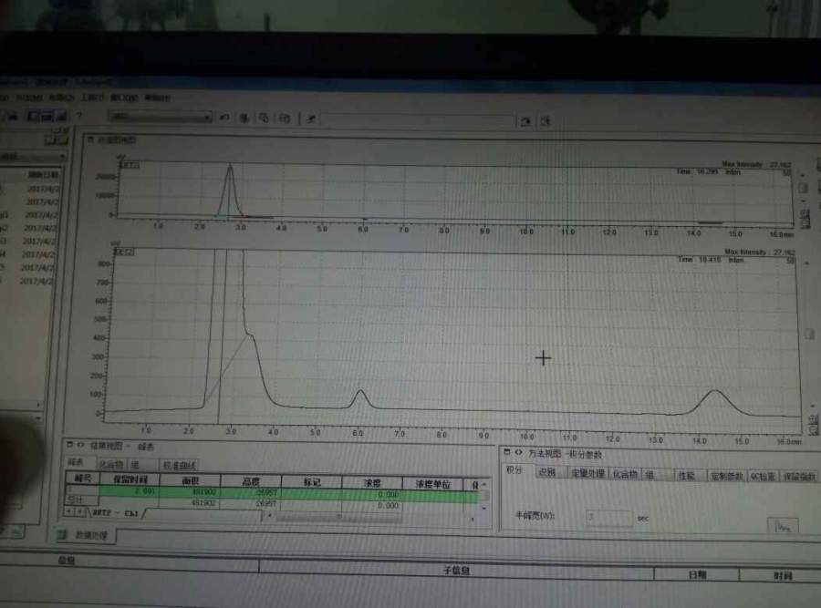 我用自己填的5A分子筛测氢气,进样针进样,会带入空气,故实则分离氢气,氧气和氮气。图一为进的空气的色谱图,图二为高纯氢气的色谱图。图二氢气那里为什么会是那个样子??求解答 发自小木虫Android客户端 |