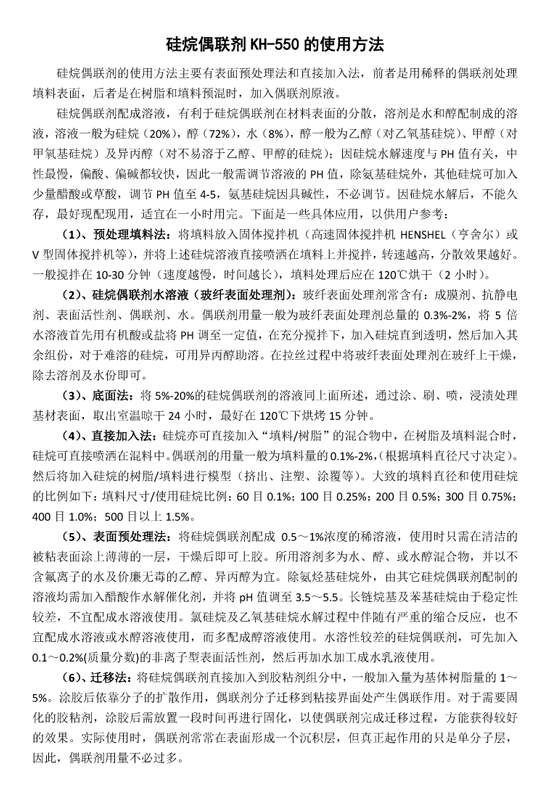 硅烷偶联剂KH-550的使用方法
