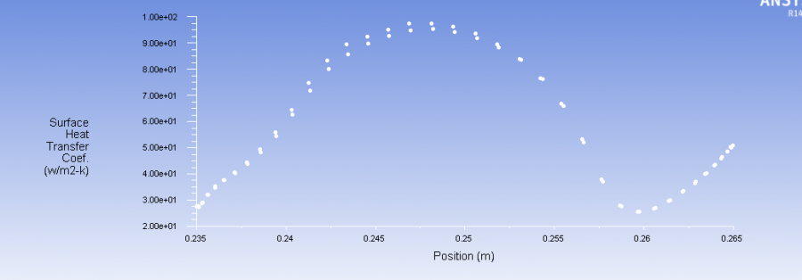 我做的是2D流场的圆柱表面对流换热分析 我设置壁面温度320K 环境温度300K 计算方法采用couple. 得到的结果和别人的论文与老外的SCI相比较 整体的趋势是对的 但是初始点太低 不知道是我设置的问题还是 怎样可以调整这个换热系数的曲线啊 青椒一下各位大神同学 3Q ![]() hh.png |